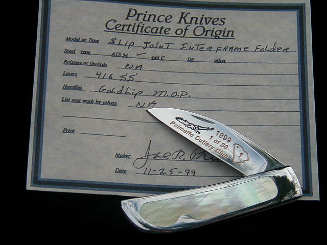 1996 Herron Herron Drop Point Hunter. 42 issued value $700.00